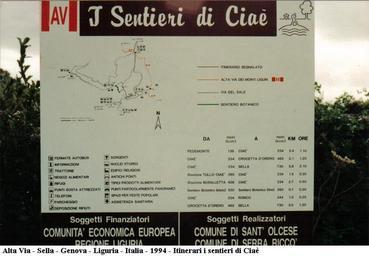 Keywords: Alta Via - Sella - Genova - Italia - 1994 - Itinerari i sentieri di Ciaè.jpg Alta Via - Sella - Genova - Italia - 1994 - Itinerari i sentieri di Ciaè 2005-09-04 own assumed Roger469 Hiking and footpath signs in Italy