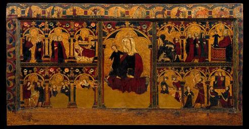 | Keywords: Altar frontal of Jesus' childhood - Google Art Project.jpg  466155 Unknown /collection/museu-nacional-dart-de-catalunya/artwork/altar-frontal-of-jesus-childhood-unknown/573476/ author /collection/museu-nacional-dart-de-catalunya/ Museu Nacional d'Art de Catalunya - MNAC Barcelona 497131 http //www mnac cat/ 12/28/2011 4 37 31 PM /collection/museu-nacional-dart-de-catalunya/artwork/altar-frontal-of-jesus-childhood-unknown/573476/ 1326 Religion Tempera and gold leaf on wood True 908 573476 True 1350 Second quarter of 14th century /collection/museu-nacional-dart-de-catalunya/level/ground-floor/2552108/ Ground floor 3/24/2012 4 36 03 AM 004368-000 http //art mnac cat/fitxatecnica html;jsessionid inventoryNumber 004368-000 lang en Museu Nacional d'Art de Catalunya Painting 1320 1360 Arteta Navarra Provenance w1712 x h908 x d58 cm Second quarter of 14th century False 1 91760299625468 Object /collection/museu-nacional-dart-de-catalunya/level/ground-floor/2552108/room-19/598331/ Room 19 altar-frontal-of-jesus-childhood-unknown Altar frontal of Jesus' childhood a 1712 Plandiura Collection acquired 1932 004368-000 Tempera and gold leaf on wood Religion special url_id PQENykuYkecaBg PD-old-100 Romanesque antependium at MNAC Google Art Project works by unknown artist |