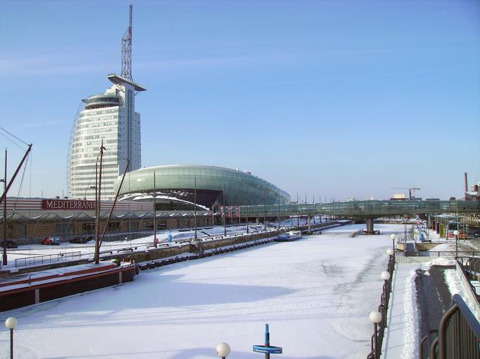 | Keywords: Alter Hafen Bremerhaven snow.jpg Bremerhaven On the left the Atlantic Hotel SailCity and the shopping centre Mediterraneo which is linked to the Columbus Center on the right by a swing bridge Snow has fallen on the frozen water in the harbour pool de Blick auf den nördlichen Teil des Alten Hafens in Bremerhaven Schnee liegt auf dem Eis des Hafenbeckens own Garitzko 2010-02-11 Havenwelten Winter in Bremerhaven 2010 in Bremerhaven | ||||
