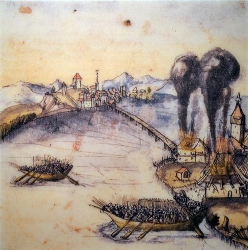 | Keywords: Alter Zürichkrieg - Rapperswiler stecken am 21. Mai 1443 Hurden in Brand, Chronik Werner Schodoler, 1514 - Stadtmuseum Rapperswil 2013-01-05 16-32-27 -ACD5-.JPG Das 2010/2012 runderneuerte Stadtmuseum in Rapperswil SG und seine Sammlung Alter Zürichkrieg 1436-50 Rapperswiler stecken am 21 Mai 1443 Hurden in Brand Chronik Werner Schodoler 1514 Collection of the Stadtmuseum in Rapperswil Switzerland Category Stadtmuseum Rapperswil 2013-01-05 xxx upload by Roland zh Fotografiert am 5 Januar 2013 mit Einwilligung des Stadtmuseums Rapperswil <gallery perrow 4> File Aussenfassaden der im November 2011 zum Abschluss gebrachten Erneuerungsarbeiten am Stadtmuseum Rapperswil 2012-10-16 15-16-43 ShiftN jpg File Rapperswil - Stadtmuseum - Abschluss Erneuerung 2011-11-16 16-19-27 SX230HS ShiftN jpg File Rapperswil - Stadtmuseum 'Tag des offenen Baus' - Innnansicht 2011-11-06 15-11-03 SX230HS ShiftN jpg File Rapperswil - Stadtmauer west - Stadtmuseum IMG 1706 ShiftN jpg </gallery> Other fields Credit line http //creativecommons org/licenses/by-sa/3 0/ CC-BY-SA-3 0 Unported WC © Roland Fischer Zürich Switzerland “ Mail notification to roland_zh at hispeed dot ch wiki PD-old Third party works photographed by User Roland zh Taken with Nikon D7000 5th January 2013 in Switzerland 2013 in Rapperswil-Jona Collections of Stadtmuseum Rapperswil Historical images of Rapperswil-Jona Historical images of Zürichsee Zürichsee at Rapperswil Boats in Switzerland Historical boats Hurden Historical images of Obersee Zürichsee Historical images of Holzbrücke Rapperswil “Hurden Old Zurich War Gerold Edlibach Wooden bridges in art People with boats in art Watercraft on Zürichsee 15th-century sieges 1443 in Switzerland Werner Schodoler Swiss soldiers 1300-1550 Historical images of the canton of Schwyz |