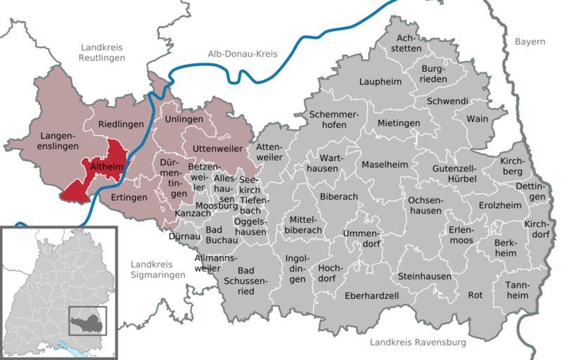 | Keywords: Altheim in BC.svg DeLocMaps Altheim Altheim bei Riedlingen Landkreis Biberach District of Biberach L'arrondissement de Biberach Arrondissement de Biberach Baden-Württemberg Bade-Wurtemberg Baden-Württemberg own based on <br/> File Municipalities in Baden-Württemberg svg by TUBS<br/> File Baden-Württemberg HD district svg by TUBS 2010-05-18 Hagar66 based on work of TUBS Other fields A 14 + ~ Hagar66 by User Hagar66 Hagar66/licensesection Attribution TUBS/Credits Locator maps of municipalities in Landkreis Biberach Altheim bei Riedlingen |