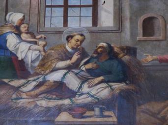Keywords: Altorf StCyriaque120.JPG fr Alsace Bas-Rhin Altorf Abbaye Saint-Cyriaque Détail des fresques 2011-02-23 own Rh-67 cc-by-sa-3 0 Artwork / Œuvre d'art / Kunstwerk fresco canvas 280 cm de large Abbatiale Saint-Cyriaque d'Altorf Nef IM67016964 object history Trois de ces peintures datant de la campagne de travaux des années 20-30 du 18e siècle ont été fortement restaurées et en grande partie repeintes vraisemblablement par Ignace Schott de Saverne dont on pense pouvoir reconnaître la main après leur redécouverte en 1861 lorsqu'on supprima le badigeon sur les colonnes et les pierres de taille dans la nef la quatrième près de la chaire seulement en 1878 Selon le curé Sattler elles auraient été badigeonnées à la Révolution other versions Ralph Hammann PD-old accession number Uploaded with UploadWizard Photographs of Altorf by Ralph Hammann Taken with Canon PowerShot SX20 IS Nave of Saint Cyriaque Church Altorf Frescos in Bas-Rhin Baroque frescos in Alsace 18th-century church paintings in Alsace 18th-century frescos in Alsace Altorf 19th-century church paintings in Alsace 19th-century frescos in Alsace Altorf Saint Cyriacus Details of frescos 1861 works in Alsace |