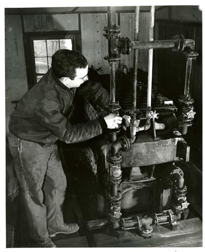 | Keywords: AluminumFromClay 003.jpg After all soluble material in the clay has been dissolved in hydrochloric acid the insoluble material largely silica sludge is removed in the filter press above The filter cake is blown dry with compressed air and washed with water The acid filtrate and washings are then evaporated in a still to smaller volume so that less hydrochloric acid gas will be required for eventual precipitation of hte aluminim as the hydrated chloride Note the glass piping upper right used because of the corrosive effect of acid vapors on metal The hydrochloric acid process for the production of alumina from was developed at the National Bureau of Standards during the war when bauxite imports were cut off and it became necessary to utilize domestic sources of aluminum National Institute of Standards and Technology 5/1/1947 National Institute of Standards and Technology PD-USGov-NIST PD-USGov National Bureau of Standards National Institute of Standards and Technology |