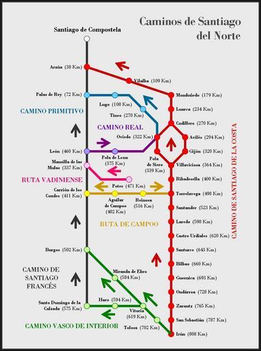 Keywords: AM03-RutasJacobeasNorte.jpg Esquema con los Caminos de Santiago del Norte de España Own 2007-07 almamía Dominio público Watermark removed Maps of Way of Saint James