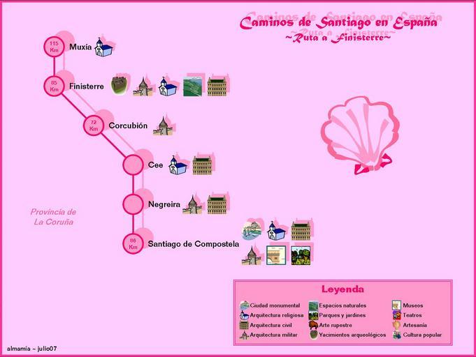 Keywords: AM-R05-CaminoSantiagoFinisterre.jpg Caminos de Santiago en España Ruta a Finisterre Own 2007-07 almamía dominio público Watermark Way of Saint James in Spain Maps of Way of Saint James