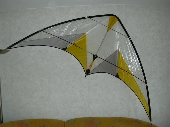 Keywords: Amazing02.jpg en Indoor Kite Amazing Manufacturer Level ONE de Indoor Lenkdrachen Amazing Hersteller Level ONE Selbst aufgenommenes Foto Ewald Brandner 2004 Kite festival Fanø 2005 Delta kites Stunt kites