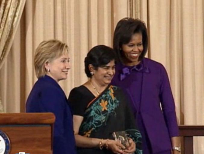 | Keywords: Ambiga Sreenevasan (Malaysia) with Secretary of State Hillary Rodham Clinton and First Lady Michelle Obama.png en Mar 11 2009 Secretary of State Hillary Rodham Clinton hosted the 3rd annual International Women of Courage Awards ceremony with guest speaker First Lady Michelle Obama in the Ben Franklin Room at the State Department 2009-03-11 http //video state gov/en/video/15389713001 U S Government Department of State other versions PD-USGov 2009 International Women of Courage Award Uploaded with UploadWizard |