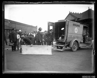 | Keywords: hood collection hoodcollection 35190 samuel j hood collection samueljhoodcollection wreck collision maritime disaster maritimedisaster sydney harbour sydneyharbour fort denison fortdenison fort macquarie fortmacquarie greycliffe sydney ferries sydneyferries ferry disaster ss tahiti sstahiti greycliffe disaster greycliffedisaster sunk fort macquarie tram depot fortmacquarietramdepot central district ambulance service centraldistrictambulanceservice man o' war steps manowarsteps bennelong point bennelongpoint blackandwhite monochrome photo border road outdoor black and white On 3 November 1927 RMS TAHITI came into collision with the Sydney ferry GREYCLIFFE off Bradleys Head. The ferry sunk and claimed 40 lives. This photograph depicts an ambulance vehicle assisting the victims of the tragedy at the eastern side of the Fort Macquarie Tram Depot. This photo is part of the Australian National Maritime Museum’s Samuel J. Hood Studio collection. Sam Hood (1872-1953) was a Sydney photographer with a passion for ships. His 60-year career spanned the romantic age of sail and two world wars. The photos in the collection were taken mainly in Sydney and Newcastle during the first half of the 20th century. The ANMM undertakes research and accepts public comments that enhance the information we hold about images in our collection. This record has been updated accordingly. Photographer: Samuel J. Hood Studio Collection Object no. 00035190 On 3 November 1927 RMS TAHITI came into collision with the Sydney ferry GREYCLIFFE off Bradleys Head. The ferry sunk and claimed 40 lives. This photograph depicts an ambulance vehicle assisting the victims of the tragedy at the eastern side of the Fort Macquarie Tram Depot. This photo is part of the Australian National Maritime Museum’s Samuel J. Hood Studio collection. Sam Hood (1872-1953) was a Sydney photographer with a passion for ships. His 60-year career spanned the romantic age of sail and two world wars. The photos in the collection were taken mainly in Sydney and Newcastle during the first half of the 20th century. The ANMM undertakes research and accepts public comments that enhance the information we hold about images in our collection. This record has been updated accordingly. Photographer: Samuel J. Hood Studio Collection Object no. 00035190 |