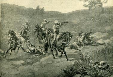 Keywords: Ambush.jpg Dans la Mandchourie Une patrouille russe tombant dans une embuscade یک گشت روس که در منچوری به کمین افتاده است Le Patriote Illustré 1904-10-30 loki11 PD-old Russo-Japanese War in October 1904 Military tactics Early 20th century cavalry before 1914 Soldiers |