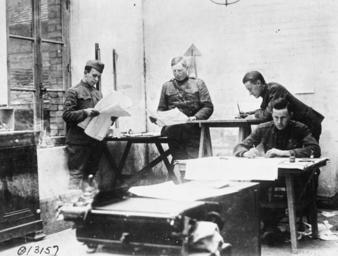 MAKE A MEME View Large Image American First World War Official Exchange Collection Q90331.jpg American First World War Official Exchange Collection<br/> Men of topographical Section Intelligence Division 1st Division drawing War Maps directly behind front lines Chepoix ...