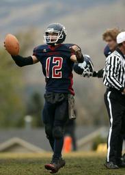 Keywords: american football football football player quarterback victory success celebration elation emotion competition athlete football game grass american football field winner game field sport referee football team high school canadian canada
