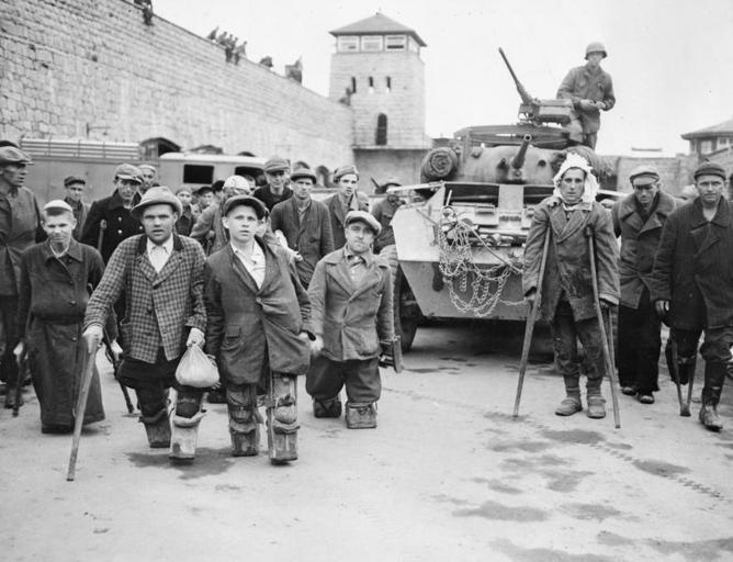 | Keywords: American (us) Embassy Second World War Photograph Library- Classified Print Collection EA65917.jpg American us Embassy Second World War Photograph Library- Classified Print Collection<br/> Crippled Russian and Polish prisoners stand in front of a US armoured vehicle belonging to the US 11th Armoured Divison This image was taken at Mauthausen concentration camp American official photographer 1945 Second World War http //media iwm org uk/iwm/mediaLib//293/media-293524/large jpg EA 65917 205222051 This image was created and released by the Imperial War Museum on the http //www iwm org uk/corporate/privacy-copyright/licence IWM Non Commercial Licence This photograph was taken by American military personnel in their official duties and is public domain under US law consequently the following licence applies in addition to any other claim PD-USGov-Mil American us Embassy Second World War Photograph Library- Classified Print Collection Associated people and organisations American Army Associated themes Poland 1939-1945 Polish Armed Forces 1939-1945 Associated keywords Liberation Allies Prisoners photographs PD-USGov American First World War Official Exchange collection Images uploaded by Fæ Mauthausen-Gusen concentration camp |