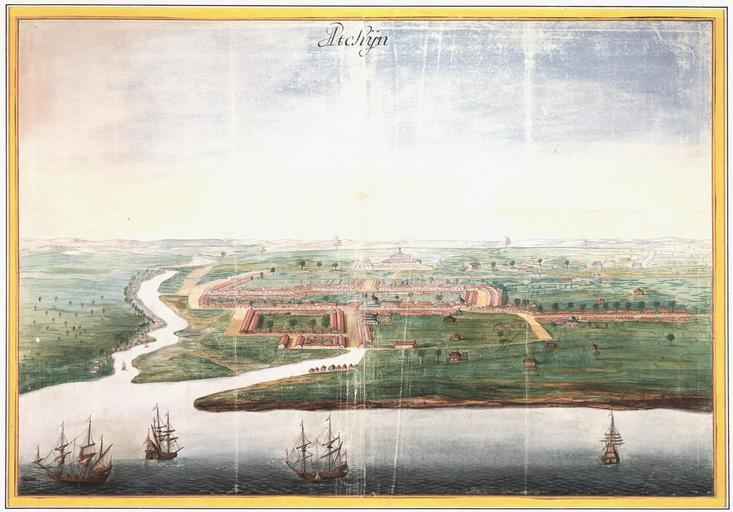 | Keywords: AMH-6132-NA Bird's eye view of the city of Atjeh.jpg Artwork nl Vogelvlucht van de stad Atjeh nl Titel catalogus Leupe NA Gezicht in vogelvlucht op de stad Atchin van de zeezijde Op de voorgrond de zee met een viertal handelsvaartuigen; links is een rivier te zien Middenachter is het paleis van de sultan afgebeeld Opmerking catalogus Leupe Komt geheel overeen met de afbeelding 'Valentijn V' blz 4 Koninklijke Bibliotheek Den Haag inv nr 227 K 1 deel II na p 258 is gespiegeld ten opzichte van deze afbeelding Cf Atlas Van Stolk Rotterdam inv nr top1076 Scheepvaartmuseum Amsterdam inv nr SNSM_b0032 109 06kaart097 en Koninklijke Bibliotheek Den Haag inv nr 693 C 6 dl XII to p 329 en Title in the Leupe catalogue NA Gezicht in vogelvlucht op de stad Atchin van de zeezijde The sea is shown in the foreground with four trading vessels A river is depicted on the left The sultan's palace is depicted in the background centre Note in the Leupe catalogue Komt geheel overeen met de afbeelding 'Valentijn V' blz 4 Cf Atlas Van Stolk Rotterdam inv nr top1076 Scheepvaartmuseum Amsterdam inv nr SNSM_b0032 109 06kaart097 and Koninklijke Bibliotheek The Hague inv nr 693 C 6 dl XII to p 329 Koninklijke Bibliotheek Den Haag inv nr 227 K 1 part II after p 258 is a mirrored version of this image Atlas of Mutual Heritage na http //www atlasofmutualheritage nl/en/object/ id 6132 Source at the Atlas of Mutual Heritage - http //www gahetna nl/collectie/archief/inventaris/index/eadid/4 VELH/inventarisnr/619 22/level/file Source at the Nationaal Archief en Subjects flora church / parsonage house palace bird's-eye view / elevation elevation / bird's-eye view ship / vessel building estate / plantation nl Onderwerpen flora kerk / pastorie huis / woonhuis paleis vogelvlucht / opstand opstand / vogelvlucht schip / vaartuig gebouw landerij / plantage en Post this image is related to a VOC trading post called http //www atlasofmutualheritage nl/en/post/ id 710 Banda Aceh Inscription Atchijn nl circa 1665 Creator Johannes Vingboons nl Johannes Vingboons landmeter / kaartenmaker en Johannes Vingboons land surveyor / mapmaker Institution Nationaal Archief nl aquarel/waterverf op papier en watercolour on paper Size cm 43 62 accession number NL-HaNA_4 VELH_619 22 old number VELH0619 22 PD-Art-100 Dutch East India Company 1665 |