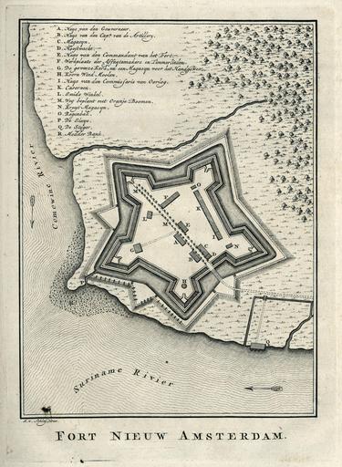 Keywords: AMH-6914-KB Map of Nieuw Amsterdam fort.jpg Artwork nl Plattegrond van fort Nieuw Amsterdam nl Plattegrond van fort Nieuw Amsterdam Fort Nieuw Amsterdam Legenda A Huys van den Gouverneur / B Huys van de Cap n van de Artillery / C Magasyn / D Hooftwacht / E Huys van den Commandant van het Fort / G De geweeze kerk nu een Magasyn voor het Handgeweer / H Koorn Wind Moolen / I Huys van den Commissaris van Oorlog / K Casernen / L Smids Winkel / M Weg beplant met Oranje Boomen / N Kruyt Magasyn O Regenbak / P De Sluys / Q De Styger / R Modder Bank en Map of Nieuw Amsterdam fort Fort Nieuw Amsterdam Key A Huys van den Gouverneur / B Huys van de Cap n van de Artillery / C Magasyn / D Hooftwacht / E Huys van den Commandant van het Fort / G De geweeze kerk nu een Magasyn voor het Handgeweer / H Koorn Wind Moolen / I Huys van den Commissaris van Oorlog / K Casernen / L Smids Winkel / M Weg beplant met Oranje Boomen / N Kruyt Magasyn O Regenbak / P De Sluys / Q De Styger / R Modder Bank Atlas of Mutual Heritage kb http //www atlasofmutualheritage nl/en/object/ id 6914 Source at the Atlas of Mutual Heritage en Subjects fortification government building / residence building house powder magazine / powder mill tanck / well / watering hole factory / workshop guard house / tollbooth key arsenal nl Onderwerpen vesting gouvernementshuis / -gebouw gebouw huis / woonhuis kruithuis / kruitmolen tanck / waterplaats / put fabriek / werkplaats tolhuis / wachthuis legenda arsenaal en Post this image is related to a WIC trading post called http //www atlasofmutualheritage nl/en/post/ id 1090 Nieuw Amsterdam Suriname Inscription Fort Nieuw Amsterdam author J v Schley direx nl circa 1770 Creator Jacobus van der Schley Creator G Tielenburg nl Jacobus van der Schley direxit G Tielenburg uitgever en Jacobus van der Schley direxit G Tielenburg publisher Institution Koninklijke Bibliotheek nl gravure op papier en engraving on paper Size cm 22 16 accession number 136 C 5 deel II na p 566 1 PD-Art-100 West-Indische Compagnie 1770 |