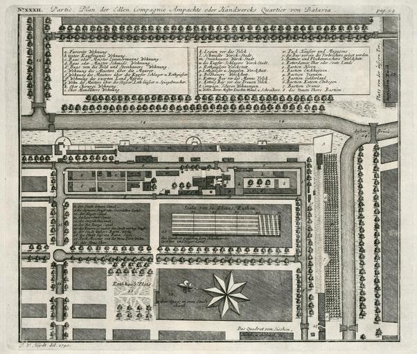 | Keywords: AMH-7042-KB Map of the artisan's quarter in Batavia.jpg Artwork nl Plattegrond van het ambachtskwartier in Batavia nl Plattegrond van het ambachtskwartier in Batavia Partic Plan der Edlen Compagnie Ampachts oder Handwercks Quartier von Batavia Legenda a Favorits Wohnung / b Unter Kauffmanns Wohnung / c Baas oder Meister Zimmermans Wohnung / d Baas oder Meister Schmids Wohnung / d' Baas von die Bild und Steinhauers Wohnung / e Wohnung des Meisters über die Maurer / f Wohnung des Meisters über die Kupfer Schlager u Rothgiesser / ff Wohnung des zweyten Land Messers / g Wohn des Meisters über die Glasser Loth Giesser u Spiegelmacher / h Ober Chirurgi Wohnung / Ober Mandator Wohnung / K Logien vor das Volck / l Schmids Werck-Stadt / m Steinhaures Werck-Stadt / n die Kupfer-Schlagers Werck-Stadt / o Rothgiessers Werckstatt / p Lothgiesser u Spieglen Werckstatt / q Bildhauers Werckstatt / r Ketting Bay vor das Manns Volck / s Ketting Bay vor das Frauen Volck / t Compagn Sclaven Wohnungen / u Wohn derer Meister Knechts Mand u Schreibers / w Pack Häuser und Magazins / y die Buy worein die Verbrechere gelegt werden / z Büttner und Plockenmachers Werckstatt / 1 Rotterdamer Thor oder Soute Lande / 2 Bastion Hoorn / 3 Bastion Enckhuysen / 4 Bastion Viannen / 5 Bastion Gelderland / 6 Bastion Katzen-Elnbogen / 7 Bastion Oranie / 8 des Neuen Thors Bastion Linksboven No XXXII Rechtsboven pag 94 en Map of the artisan's quarter in Batavia Partic Plan der Edlen Compagnie Ampachts oder Handwercks Quartier von Batavia Key a Favorits Wohnung / b Unter Kauffmanns Wohnung / c Baas oder Meister Zimmermans Wohnung / d Baas oder Meister Schmids Wohnung / d' Baas von die Bild und Steinhauers Wohnung / e Wohnung des Meisters über die Maurer / f Wohnung des Meisters über die Kupfer Schlager u Rothgiesser / ff Wohnung des zweyten Land Messers / g Wohn des Meisters über die Glasser Loth Giesser u Spiegelmacher / h Ober Chirurgi Wohnung / Ober Mandator Wohnung / K Logien vor das Volck / l Schmids Werck-Stadt / m Steinhaures Werck-Stadt / n die Kupfer-Schlagers Werck-Stadt / o Rothgiessers Werckstatt / p Lothgiesser u Spieglen Werckstatt / q Bildhauers Werckstatt / r Ketting Bay vor das Manns Volck / s Ketting Bay vor das Frauen Volck / t Compagn Sclaven Wohnungen / u Wohn derer Meister Knechts Mand u Schreibers / w Pack Häuser und Magazins / y die Buy worein die Verbrechere gelegt werden / z Büttner und Plockenmachers Werckstatt / 1 Rotterdamer Thor oder Soute Lande / 2 Bastion Hoorn / 3 Bastion Enckhuysen / 4 Bastion Viannen / 5 Bastion Gelderland / 6 Bastion Katzen-Elnbogen / 7 Bastion Oranie / 8 des Neuen Thors Bastion Top left No XXXII Top right pag 94 Atlas of Mutual Heritage kb http //www atlasofmutualheritage nl/en/object/ id 7042 Source at the Atlas of Mutual Heritage en Subjects chart / map / plan key compass / dial house factory / workshop warehouse court / judicial court building house nl Onderwerpen plattegrond / kaart legenda kompas / windroos huis / woonhuis fabriek / werkplaats pakhuis gerechtsgebouw / rechtsinstantie gebouw huis / woonhuis en Post this image is related to a VOC trading post called http //www atlasofmutualheritage nl/en/post/ id 328 Jakarta Inscription Partic Plan der Edlen Compagnie Ampachts oder Handwercks Quartier von Batavia author J W Heydt del 1740 nl 1740 Creator Johann Wolfgang Heydt Creator Johann Carl Tetschner nl Johann Wolfgang Heydt tekenaar Anoniem / Anonymous graveur / etser Johann Carl Tetschner uitgever en Johann Wolfgang Heydt draughtsman Anoniem / Anonymous engraver / etcher Johann Carl Tetschner publisher Institution Koninklijke Bibliotheek nl koperdruk op papier en copperplate printing on paper Size cm 25 29 accession number 2102 A 7 p 94 PD-Art-100 old maps of Indonesia Indonesia in the 18th century Maps of the Dutch East India Company - Indonesia 1740 |