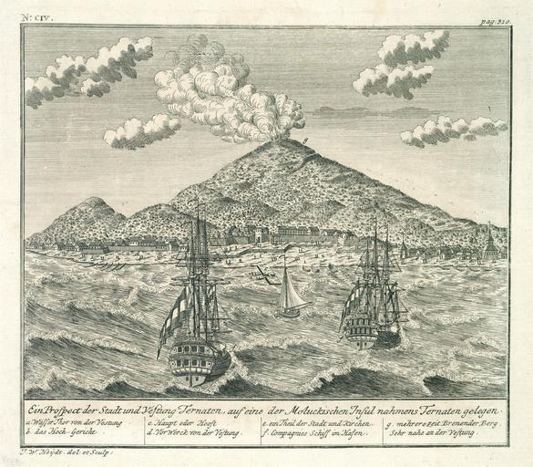 Keywords: AMH-7111-KB View of the city of Ternate.jpg Artwork nl Gezicht op de stad Ternate nl Gezicht op de stad Ternate Ein Prospect der Stadt un Vestung Ternaten auf eine der Moluckischen Insul nahmens Ternaten gelegen Linksboven No CIV Rechtsboven pag 310 Legenda a Wasser Thor von der Vestung / b das Hoch-Gericht / c Haupt oder Hooft / d Vor Werck von der Vestung / e ein Theil der Stadt und Kirchen / f Compagnies Schiff im Hafen / g Mehrere zeit Brenender Berg Sehr nahe an der Vestung en View of the city of Ternate Ein Prospect der Stadt un Vestung Ternaten auf eine der Moluckischen Insul nahmens Ternaten gelegen Top left No CIV Top right pag 310 Key a Wasser Thor von der Vestung / b das Hoch-Gericht / c Haupt oder Hooft / d Vor Werck von der Vestung / e ein Theil der Stadt und Kirchen / f Compagnies Schiff im Hafen / g Mehrere zeit Brenender Berg Sehr nahe an der Vestung Atlas of Mutual Heritage kb http //www atlasofmutualheritage nl/en/object/ id 7111 Source at the Atlas of Mutual Heritage en Subjects survey / view ship / vessel anchorage / pier / harbour fortification building house church / parsonage court / judicial court tanck / well / watering hole Person nl Onderwerpen overzicht / aanzicht schip / vaartuig rede / haven / pier vesting gebouw huis / woonhuis kerk / pastorie gerechtsgebouw / rechtsinstantie tanck / waterplaats / put Persoon en Post this image is related to a VOC trading post called http //www atlasofmutualheritage nl/en/post/ id 651 Ternate Inscription Ein Prospect der Stadt un Vestung Ternaten auf eine der Moluckischen Insul nahmens Ternaten gelegen author J W Heijdt del et Sculp nl between 1735 1744 Creator Johann Carl Tetschner Creator Johann Wolfgang Heydt nl Johann Carl Tetschner uitgever Johann Wolfgang Heydt tekenaar en graveur en Johann Carl Tetschner publisher Johann Wolfgang Heydt draughtsman and engraver Institution Koninklijke Bibliotheek nl koperdruk op papier en copperplate printing on paper Size cm 25 28 5 accession number 2102 A 7 p 310 PD-Art-100 Dutch East India Company 1730s Ternate Indonesia |