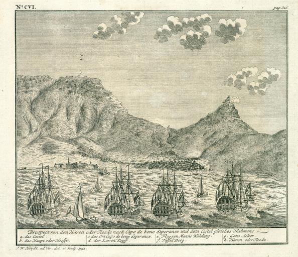 Keywords: AMH-7113-KB View of Table Bay and the Fort of Good Hope.jpg Artwork nl Gezicht op de Tafelbaai en fort de Goede Hoop nl Gezicht op de tafelbaai en fort de Goede Hoop Prospect von den Haven oder Reede nach Capo de bone Esperance und dem Castel Gleiches Nahmens Linksboven No CVI Rechtsboven pag 316 Legenda a das Castel / b das Haupt oder Hoofft / c das Ort Capo de bone Esperance / d der Löwen Kopff / e Flaggen Manns Wohnung / f Taffel Berg / g Gotts Acker / h Haven oder Reede en View of Table Bay and the Fort of Good Hope Prospect von den Haven oder Reede nach Capo de bone Esperance und dem Castel Gleiches Nahmens Top left No CVI Top right pag 316 Key a das Castel / b das Haupt oder Hoofft / c das Ort Capo de bone Esperance / d der Löwen Kopff / e Flaggen Manns Wohnung / f Taffel Berg / g Gotts Acker / h Haven oder Reede Atlas of Mutual Heritage kb http //www atlasofmutualheritage nl/en/object/ id 7113 Source at the Atlas of Mutual Heritage en Subjects survey / view ship / vessel anchorage / pier / harbour fortification building house nl Onderwerpen overzicht / aanzicht schip / vaartuig rede / haven / pier vesting gebouw huis / woonhuis en Post this image is related to a VOC trading post called http //www atlasofmutualheritage nl/en/post/ id 320 Cape Town Inscription Prospect von den Haven oder Reede nach Capo de bone Esperance und dem Castel Gleiches Nahmens author J W Heijdt ad viv del et Sculp 1741 nl 1741 Creator Johann Carl Tetschner Creator Johann Wolfgang Heydt nl Johann Carl Tetschner uitgever Johann Wolfgang Heydt tekenaar en graveur en Johann Carl Tetschner publisher Johann Wolfgang Heydt draughtsman and engraver Institution Koninklijke Bibliotheek nl koperdruk op papier en copperplate printing on paper Size cm 25 29 accession number 2102 A 7 p 316 PD-Art-100 Dutch East India Company 1741 Castle of Good Hope |