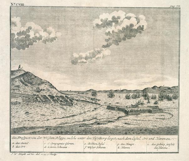 Keywords: AMH-7115-KB View of the fort of Good Hope and the harbour from the direction of Table Mountain.jpg Artwork nl Gezicht op fort Goede Hoop en de haven vanuit de richting van de Tafelberg nl Gezicht op fort Goede Hoop en de haven vanuit de richting van de Tafelberg Ein Prospect von der Weissen Klippe welche unter den Tafelberg lieget nach dem Castel Ort und Haven zu Linksboven No CVIII Rechtsboven pag 322 Legenda a das Castel / b das Ort / c E Compagnies Gürten / d Löwen Schwanz / e Robben Insul / f Wasser Schantz / g das Haupt / h Haven / i das Gebürg jenseit des Havens en View of the fort of Good Hope and the harbour from the direction of Table Mountain Ein Prospect von der Weissen Klippe welche unter den Tafelberg lieget nach dem Castel Ort und Haven zu Top left No CVIII Top right pag 322 Key a das Castel / b das Ort / c E Compagnies Gürten / d Löwen Schwanz / e Robben Insul / f Wasser Schantz / g das Haupt / h Haven / i das Gebürg jenseit des Havens Atlas of Mutual Heritage kb http //www atlasofmutualheritage nl/en/object/ id 7115 Source at the Atlas of Mutual Heritage en Subjects survey / view fortification building garden / ornamental garden ship / vessel anchorage / pier / harbour house church / parsonage nl Onderwerpen overzicht / aanzicht vesting gebouw tuin / siertuin schip / vaartuig rede / haven / pier huis / woonhuis kerk / pastorie en Post this image is related to a VOC trading post called http //www atlasofmutualheritage nl/en/post/ id 320 Cape Town Inscription Ein Prospect von der Weissen Klippe welche unter den Tafelberg lieget nach dem Castel Ort und Haven zu author J W Heijdt ad Viv del 1741 et Sculp nl 1741 Creator Johann Wolfgang Heydt Creator Johann Carl Tetschner nl Johann Wolfgang Heydt tekenaar en graveur Johann Carl Tetschner uitgever en Johann Wolfgang Heydt draughtsman and engraver Johann Carl Tetschner publisher Institution Koninklijke Bibliotheek nl koperdruk op papier en copperplate printing on paper Size cm 25 29 accession number 2102 A 7 p 322 PD-Art-100 Dutch East India Company 1741 Castle of Good Hope |