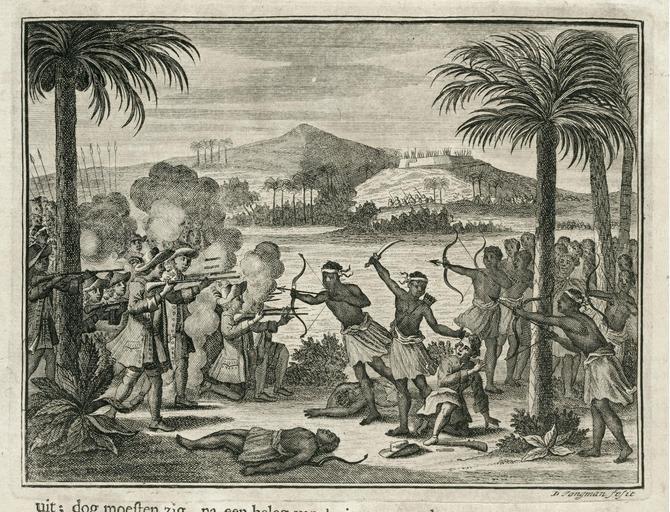 Keywords: AMH-7214-KB The conquest of Hoetemoeri.jpg Artwork nl De verovering van Hoetemoeri nl De verovering van Hoetemoeri Hoetemoeri is een dorp op het eiland Hitu dat in 1618 door gouverneur Van Speult onderworpen werd De afbeelding is afkomstig uit het het werk 'Oud en Nieuw Oost-Indiën' van François Valentyn Op de achtergrond is de vesting van Hoetemoeri te zien en The conquest of Hoetemoeri Hoetemoeri is a village on the island of Hitu that was conquered in 1618 by governor Van Speult The plate is taken from the work 'Oud en Nieuw Oost-Indien' by Francois Valentyn In the background the fort of Hoetemoeri is depicted Atlas of Mutual Heritage kb http //www atlasofmutualheritage nl/en/object/ id 7214 Source at the Atlas of Mutual Heritage en Subjects fortification building flora battle / taking / war fight Person European Asians Africans survey / view nl Onderwerpen vesting gebouw flora veldslag / oorlog strijd / inname Persoon Europeanen Aziaten Afrikanen overzicht / aanzicht 1724 Creator Dirk Jongman Creator J van Braam Creator Gerard onder de Linden nl Dirk Jongman graveur / etser J van Braam uitgever Gerard onder de Linden uitgever en Dirk Jongman engraver / etcher J van Braam publisher Gerard onder de Linden publisher Institution Koninklijke Bibliotheek nl gravure op papier en engraving on paper Size cm 12 16 accession number 185 A 5 deel II II p 40 PD-Art-100 Dutch East India Company 1724 |