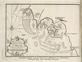 Keywords: AMH-7886-KB Map of the bay and island of Arguin.jpg Artwork nl Kaart van de baai en het eiland van Arguin nl Kaart van de baai en het eiland van Arguin Oppervlakte van de Baai en 't Eiland van Arguin Plan de la Baye et Isle d'Arguim en Map of the bay and the island of Arguin Oppervlakte van de Baai en 't Eiland van Arguin Plan de la Baye et Isle d'Arguim Atlas of Mutual Heritage kb http //www atlasofmutualheritage nl/en/object/ id 7886 Source at the Atlas of Mutual Heritage en Subjects chart / map / plan banderole / cartouche / ornamentation tanck / well / watering hole fortification building compass / dial nl Onderwerpen plattegrond / kaart banderol / cartouche / versiering tanck / waterplaats / put vesting gebouw kompas / windroos en Post this image is related to a WIC trading post called http //www atlasofmutualheritage nl/en/post/ id 927 Arguin Inscription Oppervlakte van de Baai en 't Eiland van Arguin author J v Schley direx nl 1747 Creator Pierre d' Hondt Creator Jacobus van der Schley nl Anoniem / Anonymous landmeter / kaartenmaker Pierre d' Hondt uitgever Jacobus van der Schley graveur / etser en Anoniem / Anonymous land surveyor / mapmaker Pierre d' Hondt publisher Jacobus van der Schley engraver / etcher Institution Koninklijke Bibliotheek nl gravure op papier en engraving on paper Size cm 17 22 5 accession number 693 C 6 dl III na p 231 PD-Art-100 Maps of the West-Indische Compagnie 1747 |