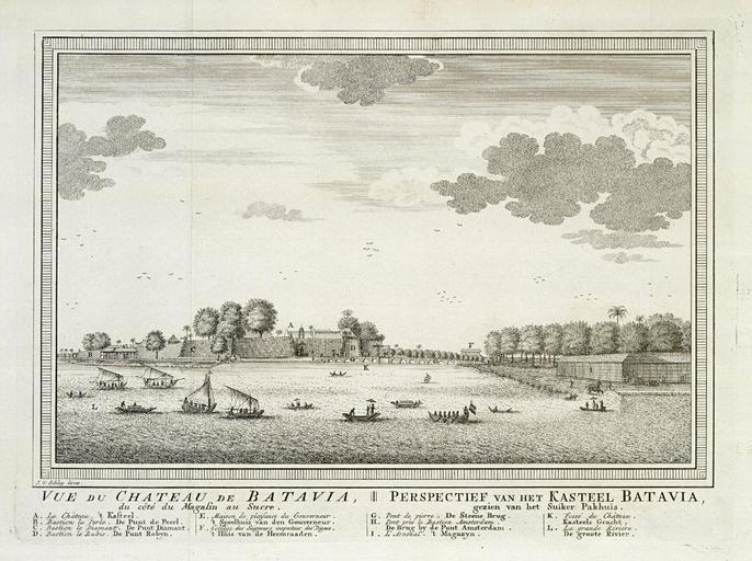 | Keywords: AMH-7977-KB View of Batavia Castle from the sugar warehouse.jpg Artwork nl Gezicht op het kasteel Batavia vanaf het suikerpakhuis nl Gezicht op het kasteel Batavia vanaf het suikerpakhuis Perspectief van het Kasteel Batavia gezien van het Suiker Pakhuis Vue du Chateu de Batavia du côté du Magasin au Sucre Legenda A-L Cf Rijksmuseum Amsterdam inv nrs NG-1972-27-F RP-P-OB-47-398 en KOG-45a en Museum Bronbeek Arnhem inv nr B96 en View of Batavia Castle from the sugar warehouse Perspectief van het Kasteel Batavia gezien van het Suiker Pakhuis Vue du Chateu de Batavia du côté du Magasin au Sucre Key A-L Cf Rijksmuseum Amsterdam inv nrs NG-1972-27-F RP-P-OB-47-398 and KOG-45a and Museum Bronbeek Arnhem inv nr B96 Atlas of Mutual Heritage kb http //www atlasofmutualheritage nl/en/object/ id 7977 Source at the Atlas of Mutual Heritage en Subjects survey / view fortification anchorage / pier / harbour key ship / vessel Person European Asians Africans building bridge nl Onderwerpen overzicht / aanzicht vesting rede / haven / pier legenda schip / vaartuig Persoon Europeanen Aziaten Afrikanen gebouw brug en Fort this image is related to a VOC fort called http //www atlasofmutualheritage nl/en/fort/ id 16 kasteel Batavia Inscription Perspectief van het Kasteel Batavia gezien van het Suiker Pakhuis author J v Schley direx nl 1753 Creator Jacobus van der Schley nl Jacobus van der Schley direxit en Jacobus van der Schley direxit Institution Koninklijke Bibliotheek nl gravure op papier en engraving on paper Size cm 16 21 5 accession number 693 C 6 dl X na p 570 PD-Art-100 Dutch East India Company 1753 Batavia Castle |