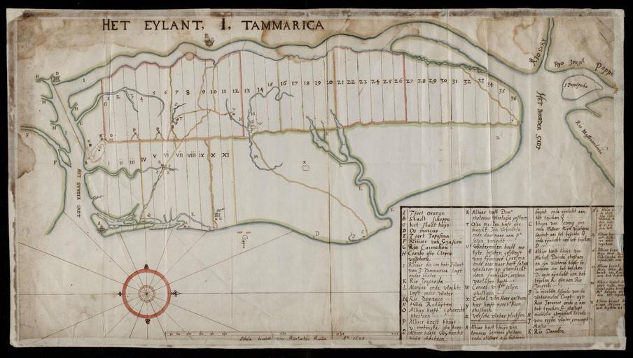 | Keywords: AMH-8577-NA Map of Itamaraca.jpg Artwork nl Kaart van Itamaraca nl Kaart van Itamaraca Titel in Catalogus Leupe NA Kaart van het Eylant Tammarica Het Eylant I Tammarica Legenda A-Z A-N en Map of Itamaraca Title in the Leupe Catalogue NA Kaart van het Eylant Tammarica Het Eylant I Tammarica Key A-Z A-N Atlas of Mutual Heritage na http //www atlasofmutualheritage nl/en/object/ id 8577 Source at the Atlas of Mutual Heritage - http //www gahetna nl/collectie/archief/inventaris/index/eadid/4 VEL/inventarisnr/707/level/file Source at the Nationaal Archief en Subjects chart / map / plan compass / dial key fortification building nl Onderwerpen plattegrond / kaart kompas / windroos legenda vesting gebouw en Post this image is related to a WIC trading post called http //www atlasofmutualheritage nl/en/post/ id 1029 Itamaracà eiland Inscription Het Eylant I Tammarica nl 1648 nl Anoniem / Anonymous landmeter / kaartenmaker en Anoniem / Anonymous land surveyor / mapmaker Institution Nationaal Archief nl pen en penseel op papier en pen and brush on paper Size cm 32 58 accession number NL-HaNA_4 VEL_707 old number VEL0707 PD-Art-100 Maps of the West-Indische Compagnie 1648 |