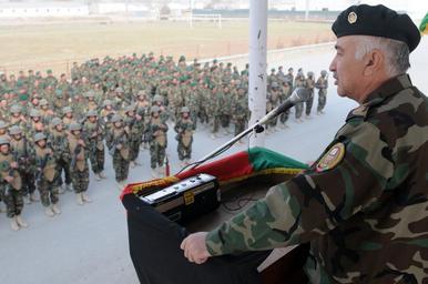 Keywords: Aminullah Karim speaking to soldiers in 2009.jpg Afghan Lt Gen Ameenullah Karim speaks to three companies of soldiers in a parade review during a deployment ceremony held in Kabul Nov 22 2009 Gen Karim commander of the ANA education department spoke to the soldiers of their duty and commitment to their mission The Afghan National Army took another step closer to meeting their goal of a 134 000-man army by October 2010 during the ceremony before the deployment of almost 800 soldiers from accelerated companies The accelerated companies finished their training at the Kabul Military Training Center which trains soldiers under a five-week schedule U S Navy photo by Chief Mass Communication Specialist SCW F Julian Carroll 091122-N-9594C-001 Navy http //www flickr com/photos/isafmedia/4127019976/ 2009-11-22 13 19 F Julian Carroll U S armed forces PD-USGov-Military-Navy cc-by-2 0 isafmedia http //flickr com/photos/29456680 N06/4127019976 04 15 5 August 2011 UTC cc-by-2 0 Kabul Military Training Center Aminullah Karim