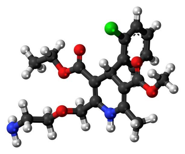 | Keywords: Amlodipine 3D ball.png Ball-and-stick model of the amlodipine molecule a calcium channel blocker Color code 505050 Carbon C black<br> F0F0F0 Hydrogen H white<br> F51E1E Oxygen O red<br> 3C50FA Nitrogen N blue<br> 14F014 Chlorine Cl green<br> 2011-07-24 own DS Visualizer Jynto talk Space-filling version cc-zero Images by Jynto Ball-and-stick models Amlodipine |