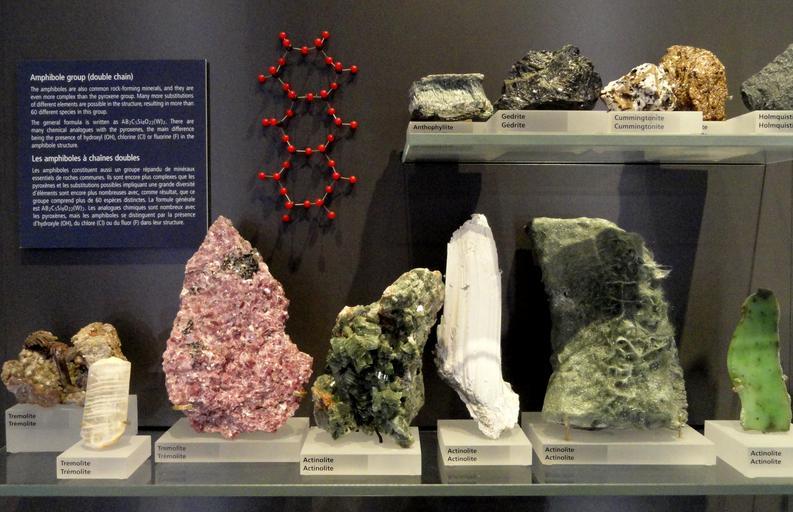 | Keywords: Amphibole group - Royal Ontario Museum - DSC00228.JPG Exhibit in the Royal Ontario Museum Toronto Ontario Canada Photography was permitted in the museum I took this photograph and release it into the public domain Daderot 2011-11-21 12 54 23 Daderot cc0 cc0 Mineral gallery at the Royal Ontario Museum Amphibole |