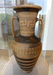 | Keywords: Amphora, geometric style, Greek-Attic, c. 770-760 BC, terracotta - Blanton Museum of Art - Austin, Texas - DSC07649.jpg en Exhibit in the Blanton Museum of Art - Austin Texas USA This work is old enough so that it is in the public domain 2015-11-15 15 17 58 own Daderot other versions PD-old-100 cc-zero Ancient Greek pottery in the Blanton Museum of Art Attic Geometric pottery | ||||