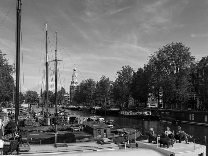 Keywords: amsterdam netherlands water river relaxation after work sky holland channel city bridge city view homes web boats places of interest