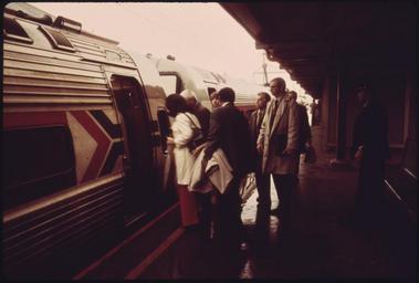 | Keywords: AMTRAK PASSENGERS BOARD A METROLINER IN A SUBURB NEAR WASHINGTON, DISTRICT OF COLUMBIA, FOR A TRIP TO NEW YORK CITY.... - NARA - 556670.tif Scope and content General notes 556670 Local identifier 412-DA-14218 Environmental Protection Agency 12/02/1970 - NARA-Author Pickerell Jim 1936- Photographer 4588217 <br /> Washington Washington D C inhabited place 4201961 38 883 -77 033 <br /> Still Picture Records Section Special Media Archives Services Division NWCS-S National Archives at College Park 8601 Adelphi Road College Park MD 20740-6001 04/1973 Record group Record Group 412 Records of the Environmental Protection Agency 1944 - 2006 Record group ARC 708 DOCUMERICA The Environmental Protection Agency's Program to Photographically Document Subjects of Environmental Concern compiled 1972 - 1977 Series ARC 542493 File unit File unit ARC Variant control numbers Agency-Assigned Identifier 237/58/014218<br /> NAIL Control Number NWDNS-412-DA-14218 yes Other versions <gallery> File AMTRAK_PASSENGERS_BOARD_A_METROLINER_IN_A_SUBURB_NEAR_WASHINGTON _DISTRICT_OF_COLUMBIA _FOR_A_TRIP_TO_NEW_YORK_CITY _-_NARA_-_556670 tif tif File AMTRAK_PASSENGERS_BOARD_A_METROLINER_IN_A_SUBURB_NEAR_WASHINGTON _DISTRICT_OF_COLUMBIA _FOR_A_TRIP_TO_NEW_YORK_CITY _-_NARA_-_556670 jpg jpg </gallery> NARA-cooperation PD-USGov NARA TIF images with categorized JPGs |