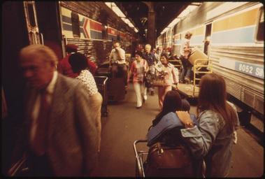 Keywords: AMTRAK RAILROAD PASSENGERS ON THEIR WAY FROM THE CHICAGO STATION TO BOARD THE BROADWAY LIMITED BOUND FOR WASHINGTON... - NARA - 556827.jpg The car at right is Amtrak 8052 Silver Restaurant a former Chicago Burlington and Quincy Railroad dining car Scope and content General notes 556827 Local identifier 412-DA-14375 Environmental Protection Agency 12/02/1970 - Pickerell Jim 1936- Photographer 4588217 <br /> Chicago Cook county Illinois United States North and Central America inhabited place 4201352 41 85 -87 65 <br /> Still Picture Records Section Special Media Archives Services Division NWCS-S National Archives at College Park 8601 Adelphi Road College Park MD 20740-6001 07/1974 Record group Record Group 412 Records of the Environmental Protection Agency 1944 - 2006 Record group ARC 708 DOCUMERICA The Environmental Protection Agency's Program to Photographically Document Subjects of Environmental Concern compiled 1972 - 1977 Series ARC 542493 File unit File unit ARC Variant control numbers Agency-Assigned Identifier 240/35/014375<br /> NAIL Control Number NWDNS-412-DA-14375 Other versions <gallery> File AMTRAK_RAILROAD_PASSENGERS_ON_THEIR_WAY_FROM_THE_CHICAGO_STATION_TO_BOARD_THE_BROADWAY_LIMITED_BOUND_FOR_WASHINGTON _-_NARA_-_556827 tif tif File AMTRAK_RAILROAD_PASSENGERS_ON_THEIR_WAY_FROM_THE_CHICAGO_STATION_TO_BOARD_THE_BROADWAY_LIMITED_BOUND_FOR_WASHINGTON _-_NARA_-_556827 jpg jpg </gallery> NARA-cooperation PD-USGov Broadway Limited Amtrak train Silver Restaurant Interior of Union Station Chicago Amtrak in 1974 July 1974 in the United States 1974 in Chicago Passenger cars of Amtrak 1974 in rail transport in the United States |