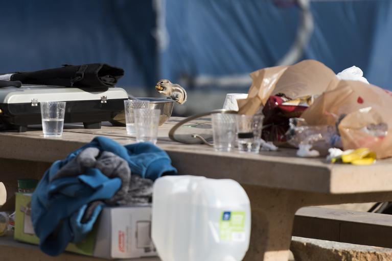 | Keywords: NPS/Brad Sutton; food, utensils, and containers left unattended in campsites attract wildlife. Desert animals are well adapted to arid conditions and are capable of providing for themselves. Human food can cause wild animals to become dehydrated and sick joshuatree nationalpark camping food keepwildlifewild jumborocks trash litter |