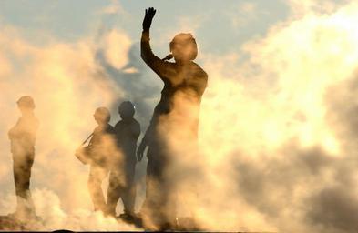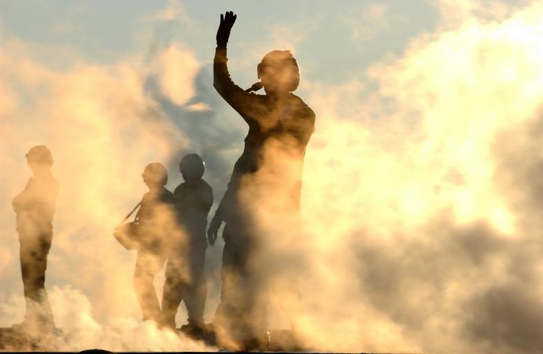 MAKE A MEME View Large Image Mate signals for another aircraft to taxi into position, as he is surrounded by the steam from one of four catapults on the flight deck aboard USS Ronald Reagan (CVN 76).jpg en Aboard USS Ronald Reagan CVN 76 Sept 29 2003 -- An Aviation ...