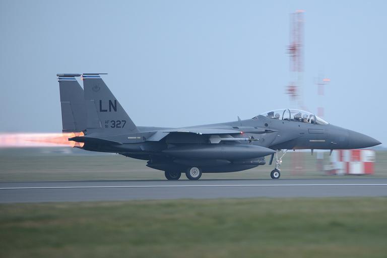 Keywords: Air Force Lakenheath England F-15E Strike Eagle takes off flightline