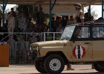 | Keywords: An Iraqi army officer stands at attention in his vehicle while performing a pass and review during a change of command ceremony on Camp Taji, Iraq.jpg en An Iraqi army officer stands at attention in his vehicle while performing a pass and review during a change of command ceremony on Camp Taji Iraq May 15 2006 The Iraqi army 2nd Brigade 9th Mechanized Division is assuming the command of the Sabeaa Al-Boor and Hora Al-Bash battlespace from U S Army Soldiers with 7th Squadron 10th Cavalry 1st Brigade 4th Infantry Division The Iraqi soldiers will take the lead and conduct their own counterinsurgency operations in this battlespace http //www defenseimagery mil/imagery html guid 489ecaa86caac5c1d1d84756a0ed5ddc54b948be 060515-N-6901L-225 PH1 AW MICHAEL LARSON 2006-05-15 UAZ-3151 Military people of Iraq post-2003 Camp Taji Military vehicles of Iraq post-2003 Vehicles of the Iraq War PD-USGov-Military-Navy |
