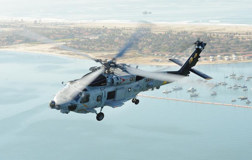 Keywords: Navy MH-60R Sea Hawk helicopter San Diego skyline