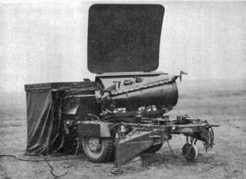 | Keywords: AN MPQ-4A.jpg en The AN/MPQ-4A was a counter battery radar system used to locate enemy mortars and small artillery units as well as to correct the fire of friendly mortar and artillery fire The unit uses a Foster Scanner the prominent conical object mid-frame The signal from the scanner is sent rearward onto the rectangular reflector at the top of the frame 2007-12-20 12 00 36 http //olive-drab com/idphoto/id_photos_m103_trailer php US Army PD-USGov Uploaded with UploadWizard Radar antennas |