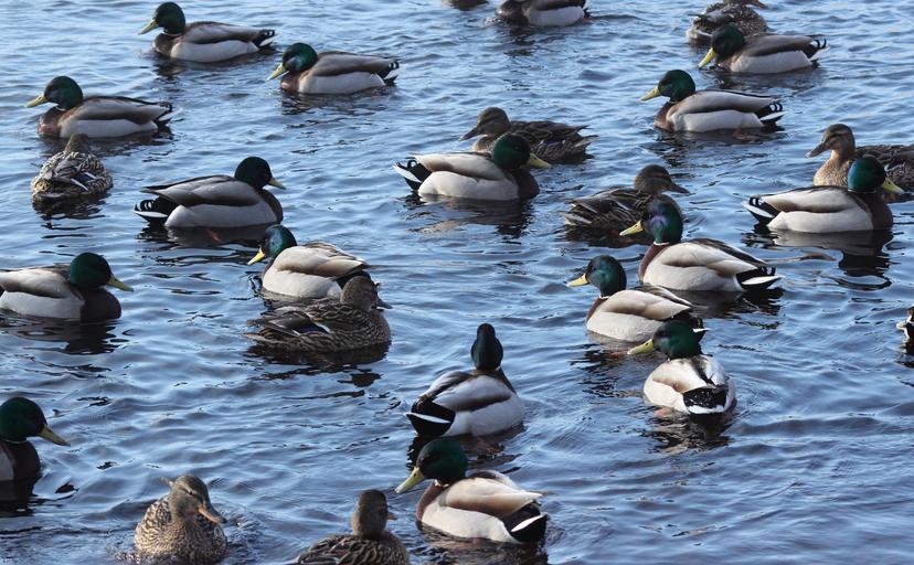 Keywords: anas platyrhynchos mallard wild duck birds flock swimming animal wildlife fauna