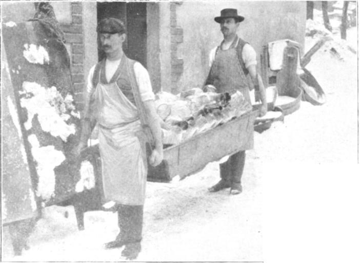 Keywords: Anastaz Papacek Prenaseni hotoveho skla.png Workers carrying finished glass in a factory at Nový Svět outside Harrachov Bohemia present-day Czech Republic Illustration to an article Ze života lidu v Krkonoších Life of people in Krkonoše by Anastáz Papáček http //archiv ucl cas cz/index php path ZlataPrahaII/24 1906-1907/10/122 png Zlatá Praha year 1906-7 issue 10 digitized by Czech Academy of Sciences 1906-12-14 Probably Anastáz Papáček 1867-1919 otherwise anonymous Anastáz Papáček Glassworks in Harrachov Zlatá Praha PD-old Glass workers