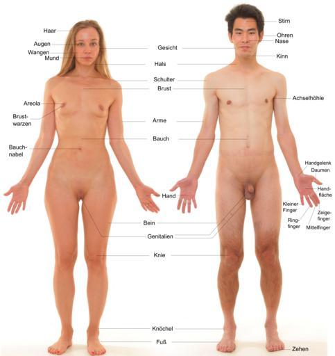 Keywords: Anatomie des menschen - neu.png de Anatomie des Menschen - Mann und Frau frontal betrachtet Die anatomischen Merkmale sind spezifiziert thumb left Anterior view of human female and male without labels jpg 2012-12-20 Mikael Häggström Other languages Human body images in different languages cc-zero Personality rights Nude men and women with white background |