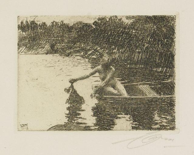 | Keywords: Anders Zorn - Rowing boat (etching) 1913.jpg Artwork sv Eka en Rowing boat creator Anders Zorn 1913 Etching cm 9 12 http //auktionsverket se/auction/fine-arts/2013-06-04/1926-anders-zorn-etsning-eka/ Stockholms Auktionsverk 1920 Etchings by Anders Zorn 1913 etchings Etchings of nude women Bathing females in black and white art |