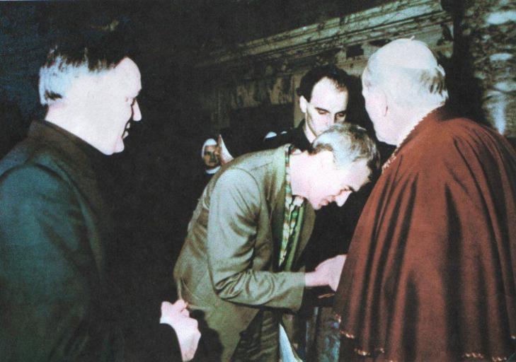 Keywords: Andrzej Kolodziej Papiez.jpg pl Prywatna audiencja u papieża Jana Pawła II po deportacji z Polski 3 maja 1988 roku own Kafund 1988-05-03 Cc-zero Andrzej Kołodziej