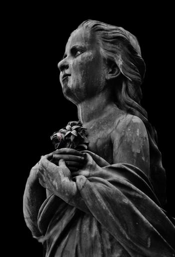Keywords: angel girl sculpture statue fig stone sculpture art still image grave tombstone cemetery old ailing long hair bouquet of flowers portrait angel figure tomb