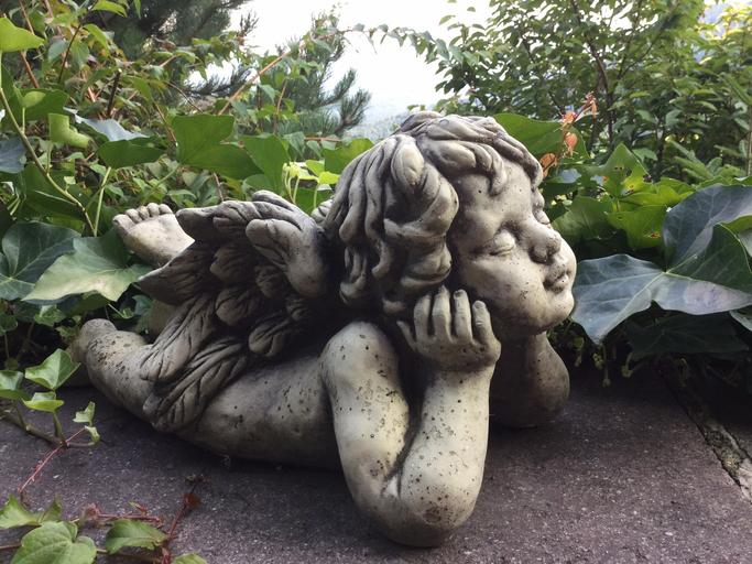 Keywords: angel relaxation garden statuette number stone sleep closed eye reverie child amur