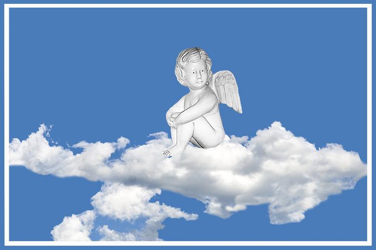 Keywords: angel sky heavenly clouds romance cherub in the sky wing fig mood feelings greeting card white love greeting postcard emotion luck lucky soul guardian angel peace faith