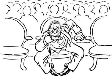 Keywords: angry man seated audience member irate anger reaction protest loud rude annoyed expression sitting theater people