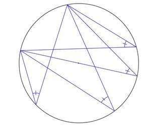 Keywords: Angulos inscritos.svg Todos los ángulos semiiscritos que subtienden el mismo arco son iguales 2006-06-08 own assumed Magister Mathematicae Drawings by Magister Mathematicae Central and inscribed angles