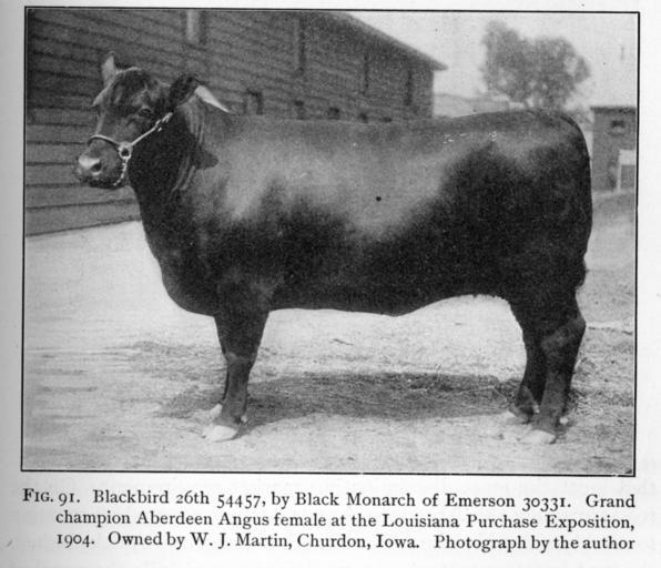| Keywords: Anguscowblackbird26alpha.jpg  Blackbird the 26th an Angus cow from the United States from circa 1900 public domain from Types and Breeds of Farm Animals published in the U S in 1906 before 1906 Charles Plumb Public domain PD-old PD-US Angus cattle |